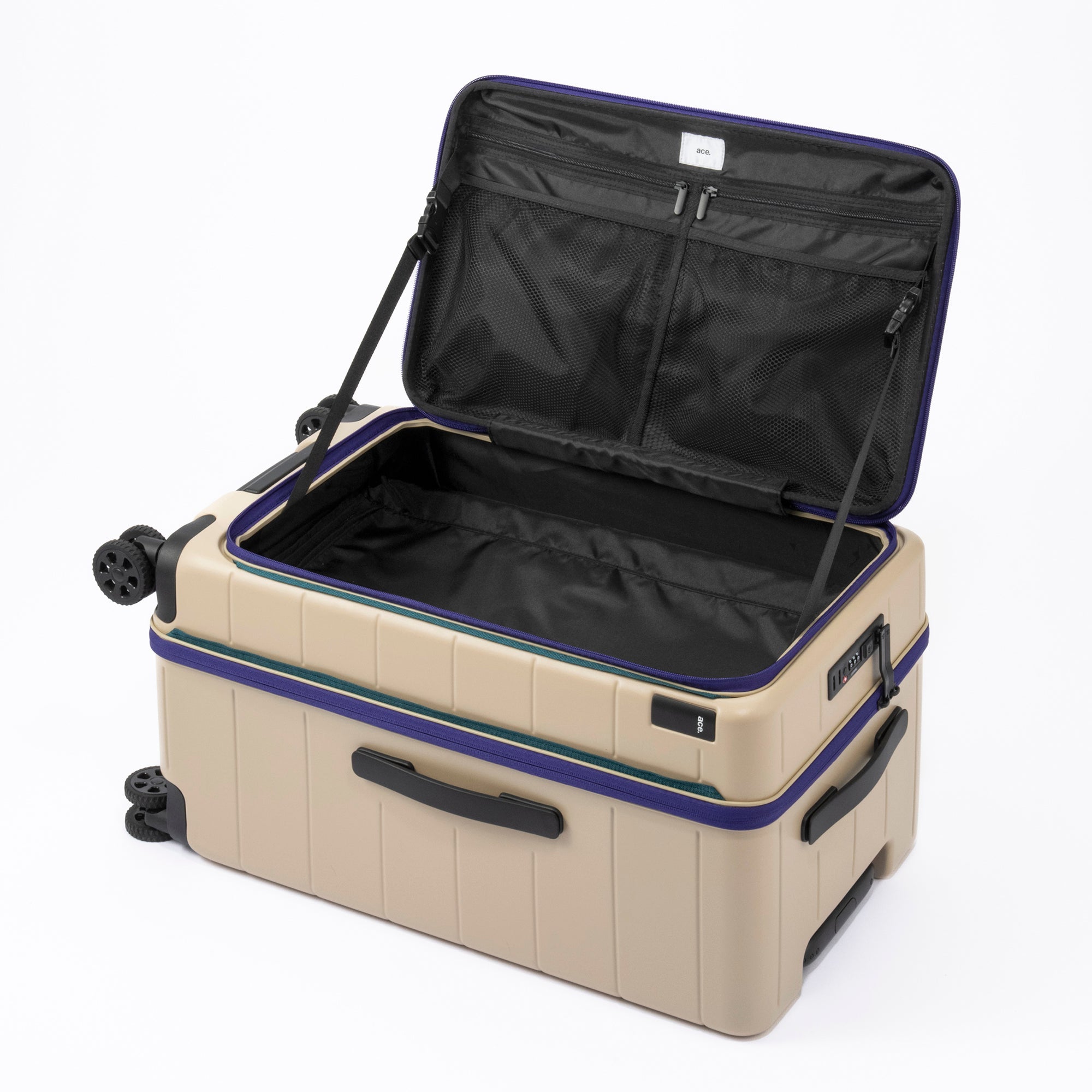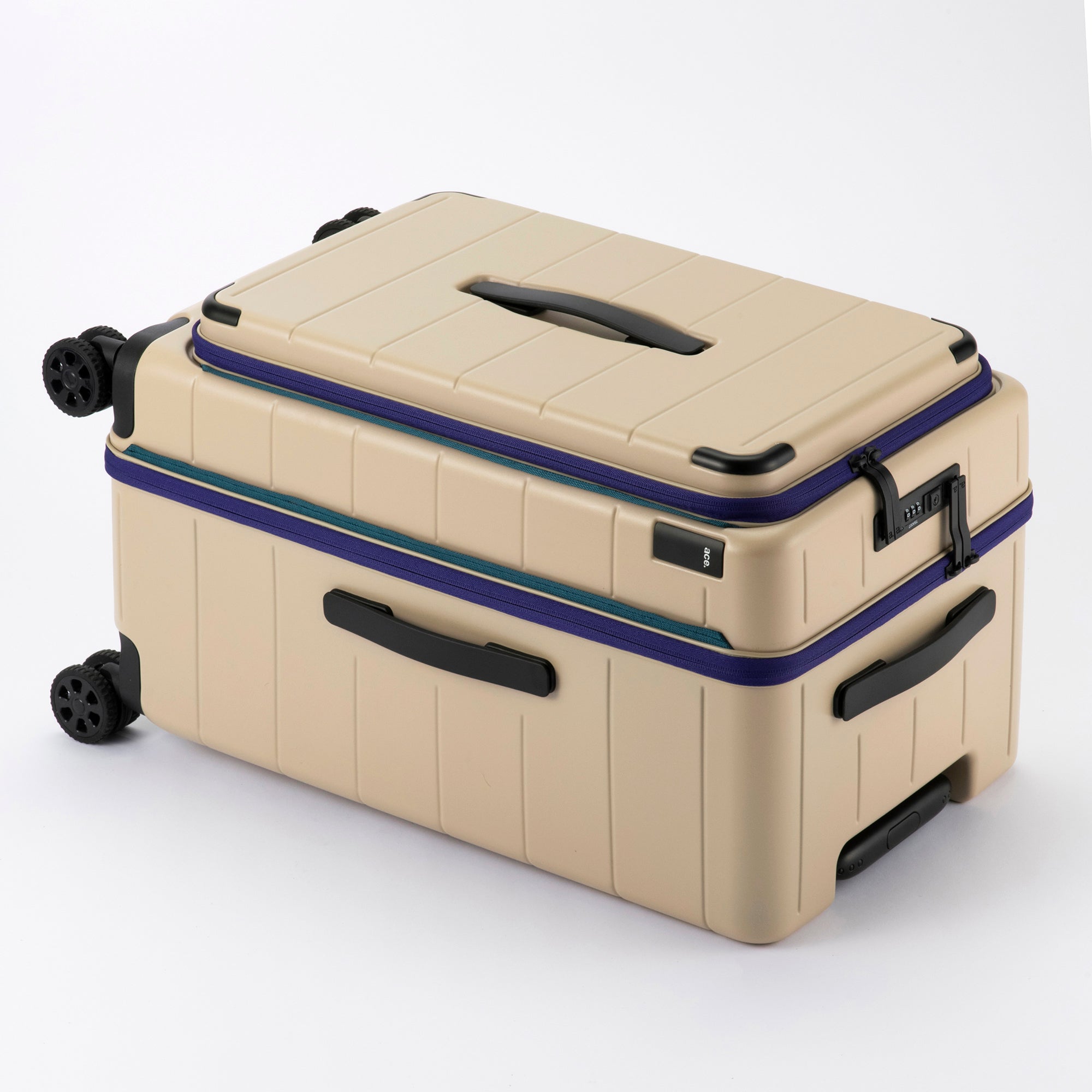 TEOFIELD is a suitcase series built on the “phase-free” concept, designed for both travel and outdoor leisure as well as emergency situations. With bold color accents and functional daisy chains for attaching gear, it’s a versatile, ready-for-anything travel companion that blends style with practical preparedness.