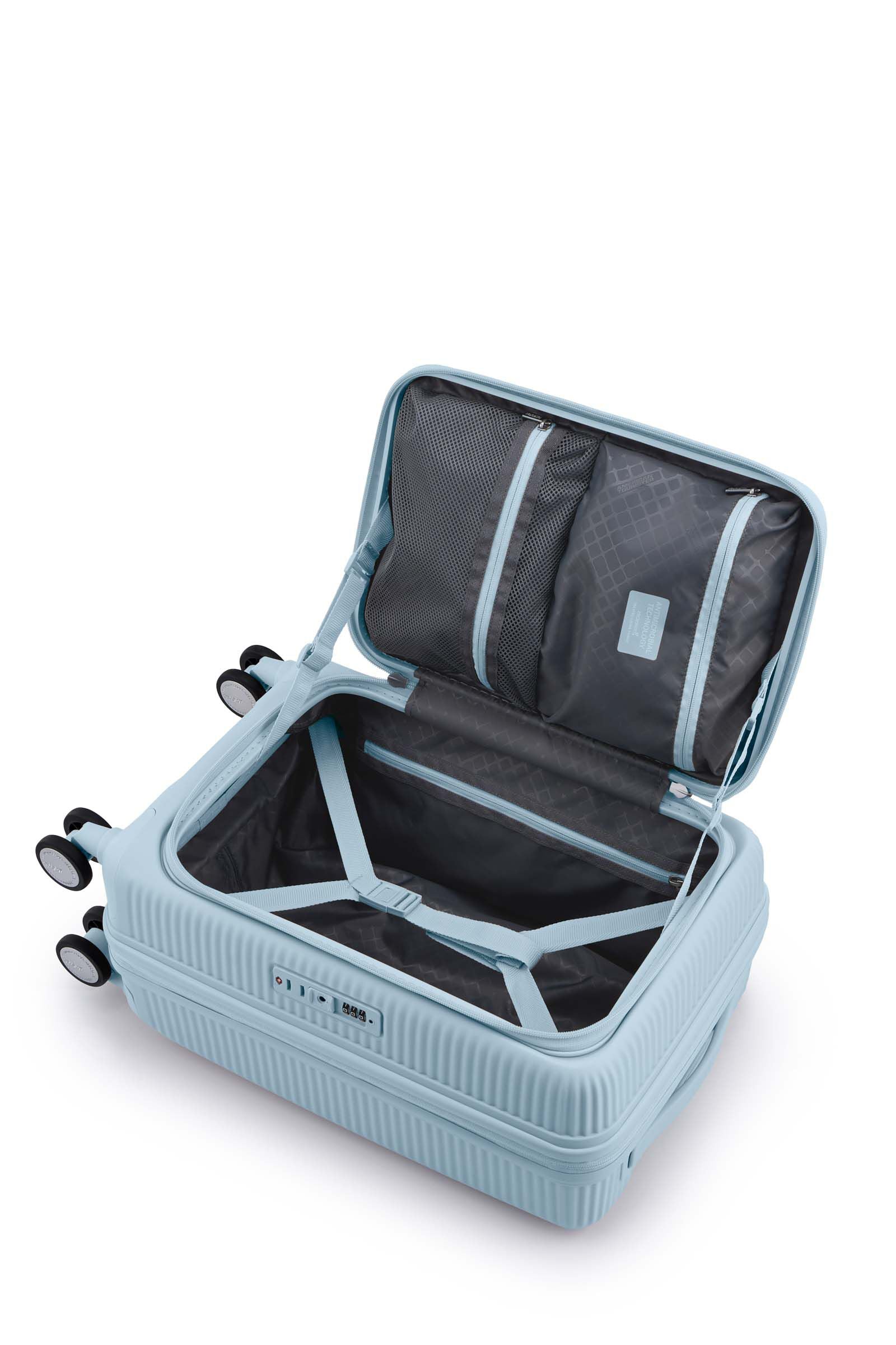The Duosaf ™ security zipper delivers top security, and the Optimov™ shock-absorbing wheels allow smooth rolling on bumpy surfaces. The recycled interior lining is treated with Microban® technology to reduce the growth of bacteria.