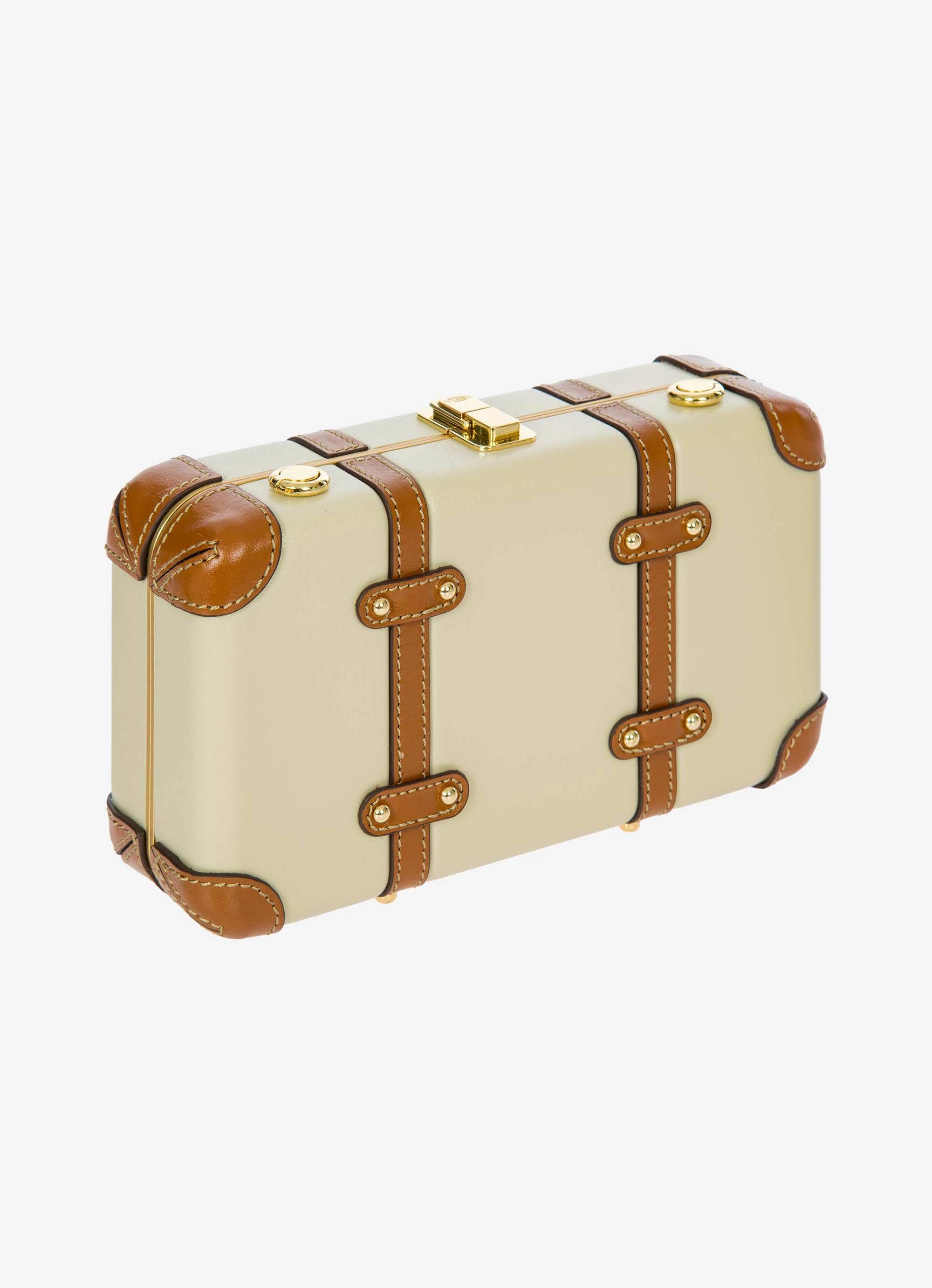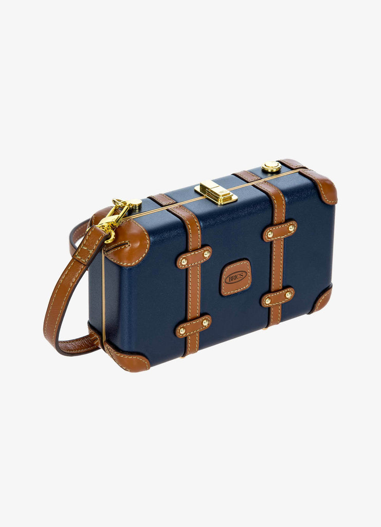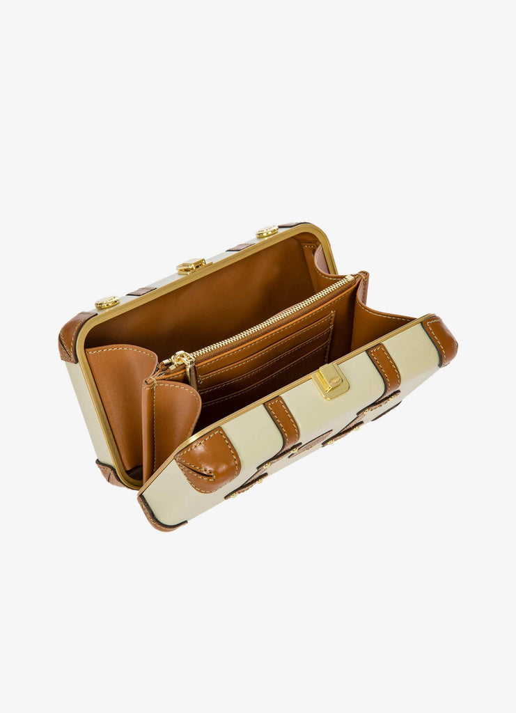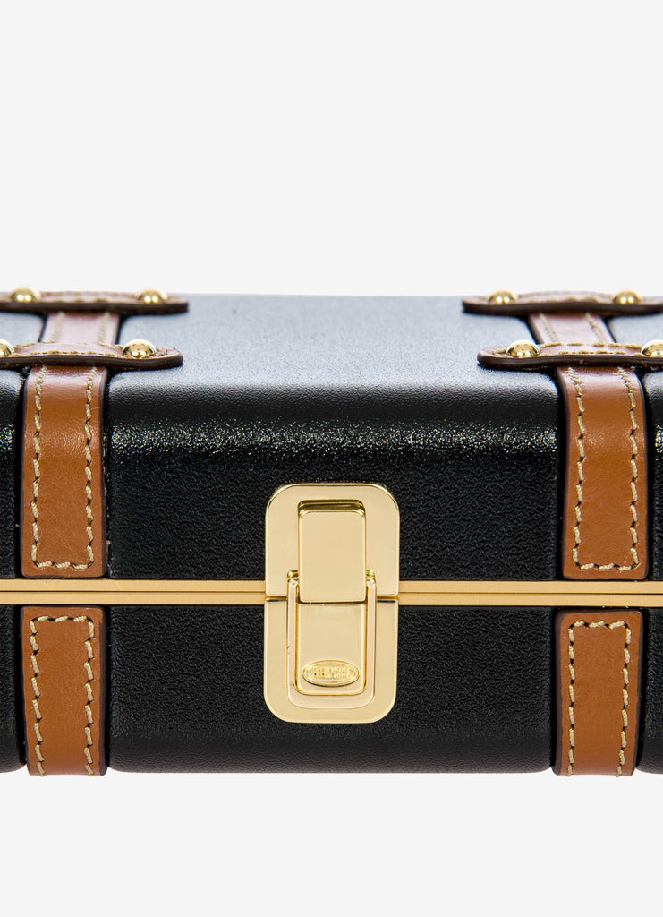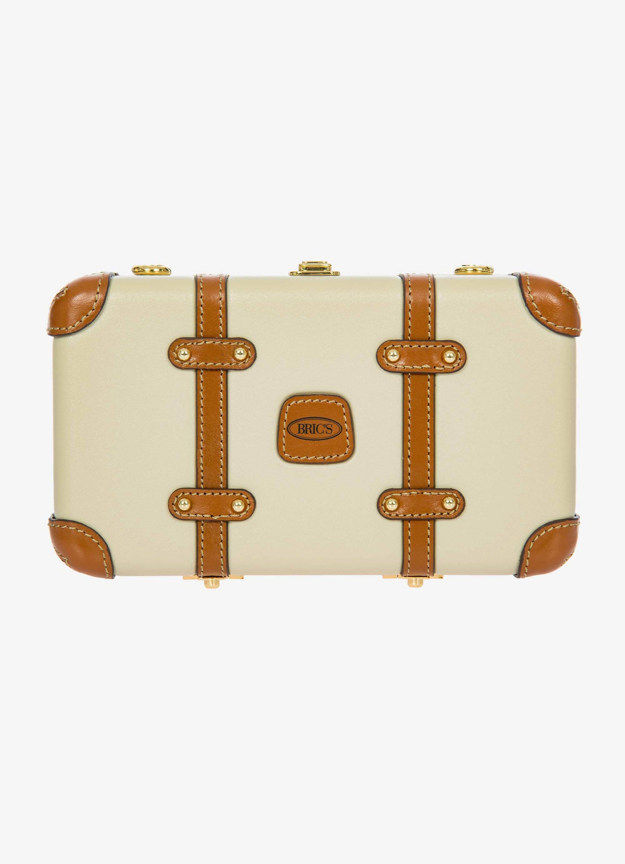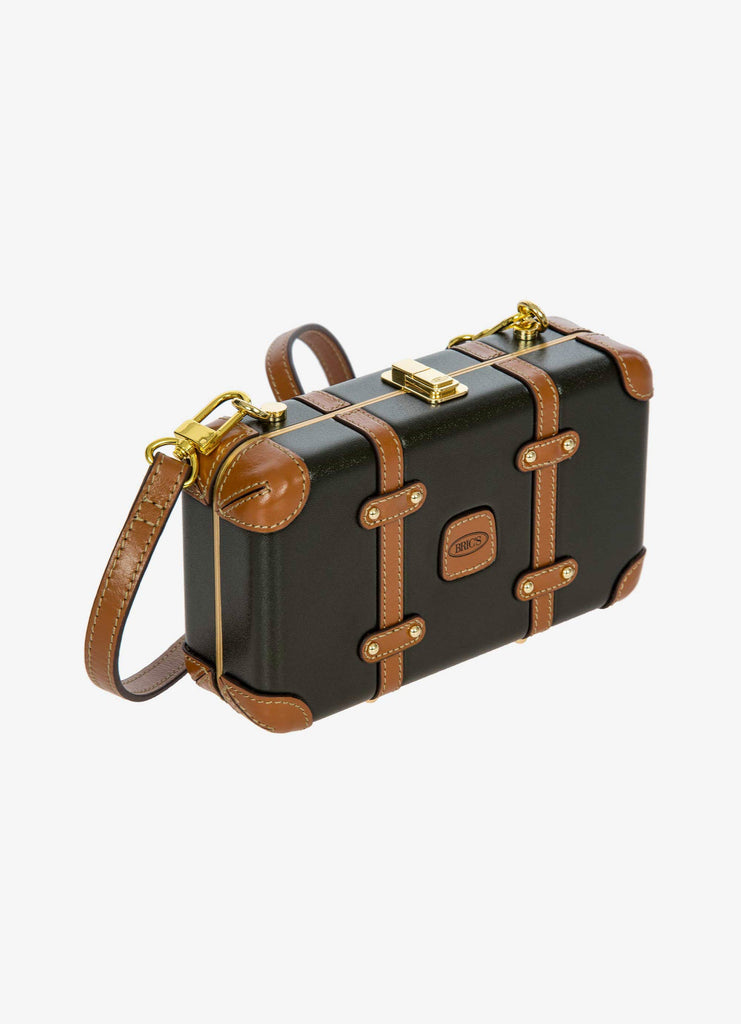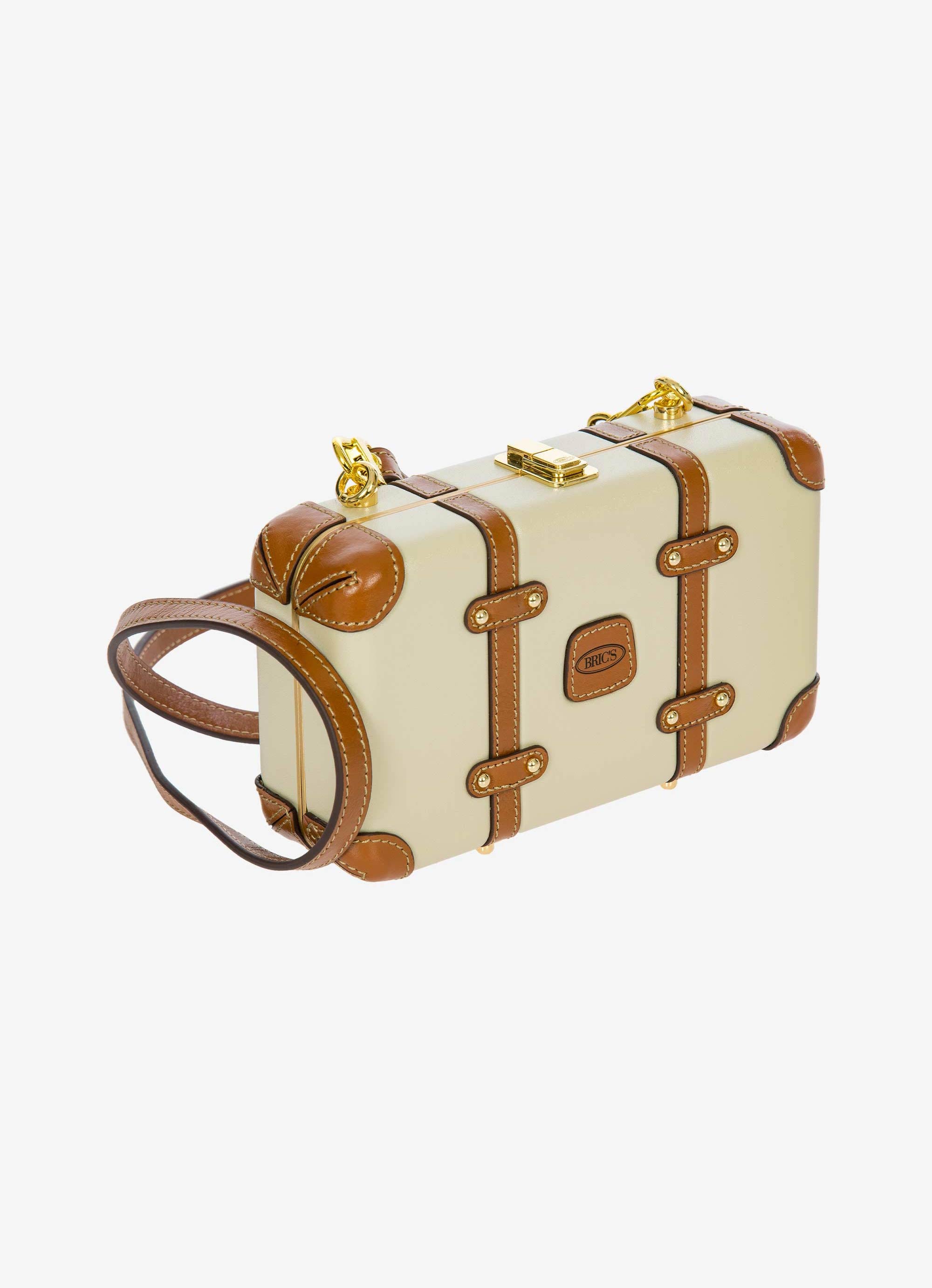 The Bellagio Legacy Bag is a small symbol of how hand-crafted excellence can be combined with elegance. Made to be paired with sophisticated looks, it recalls the iconic design of the Bellagio trolley suitcases. Meticulous attention to detail goes into making the Bellagio Legacy bag, from the real leather inserts to the gold-tone metal rivets. Constructed from an ultralight polycarbonate shell, it has been designed to elegantly hold personal items. It can be carried by hand, just like a chest, or it can be comfortably worn cross-body thanks to the soft, thin leather strap, adjustable and detachable. On the inside, it has two open compartments, divided by a zip pocket. The metal clasp closure is embellished by an embossed Bric’s logo.