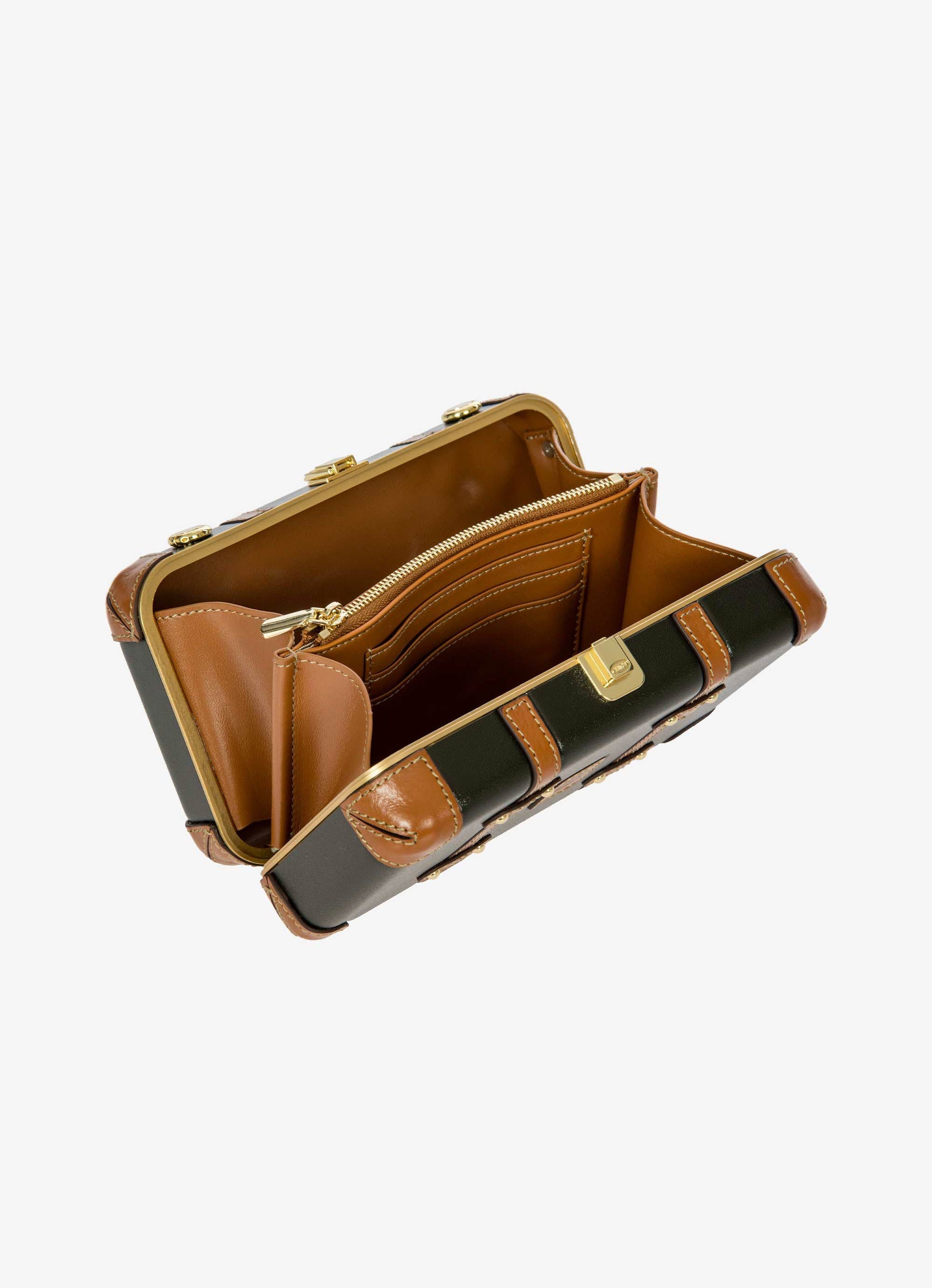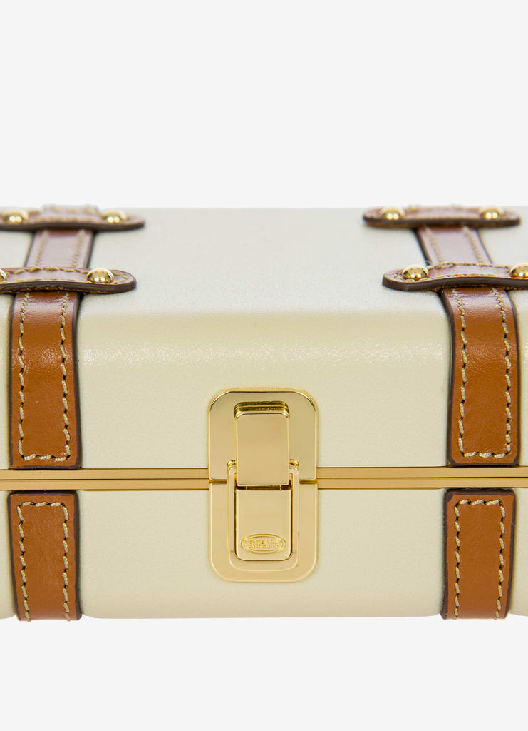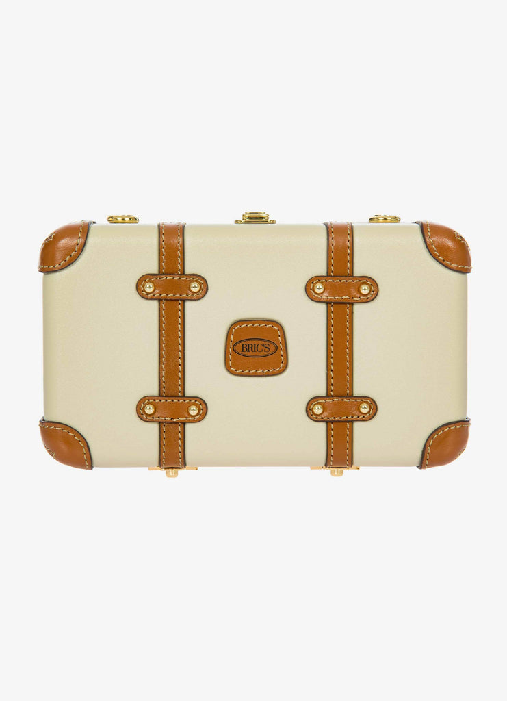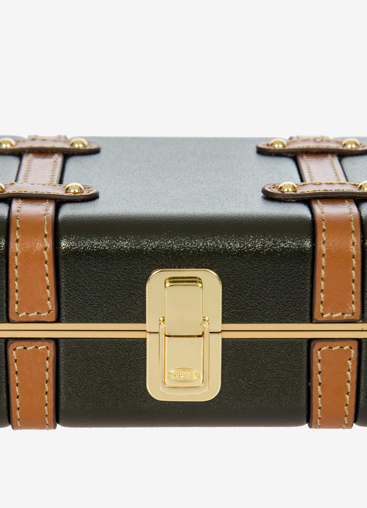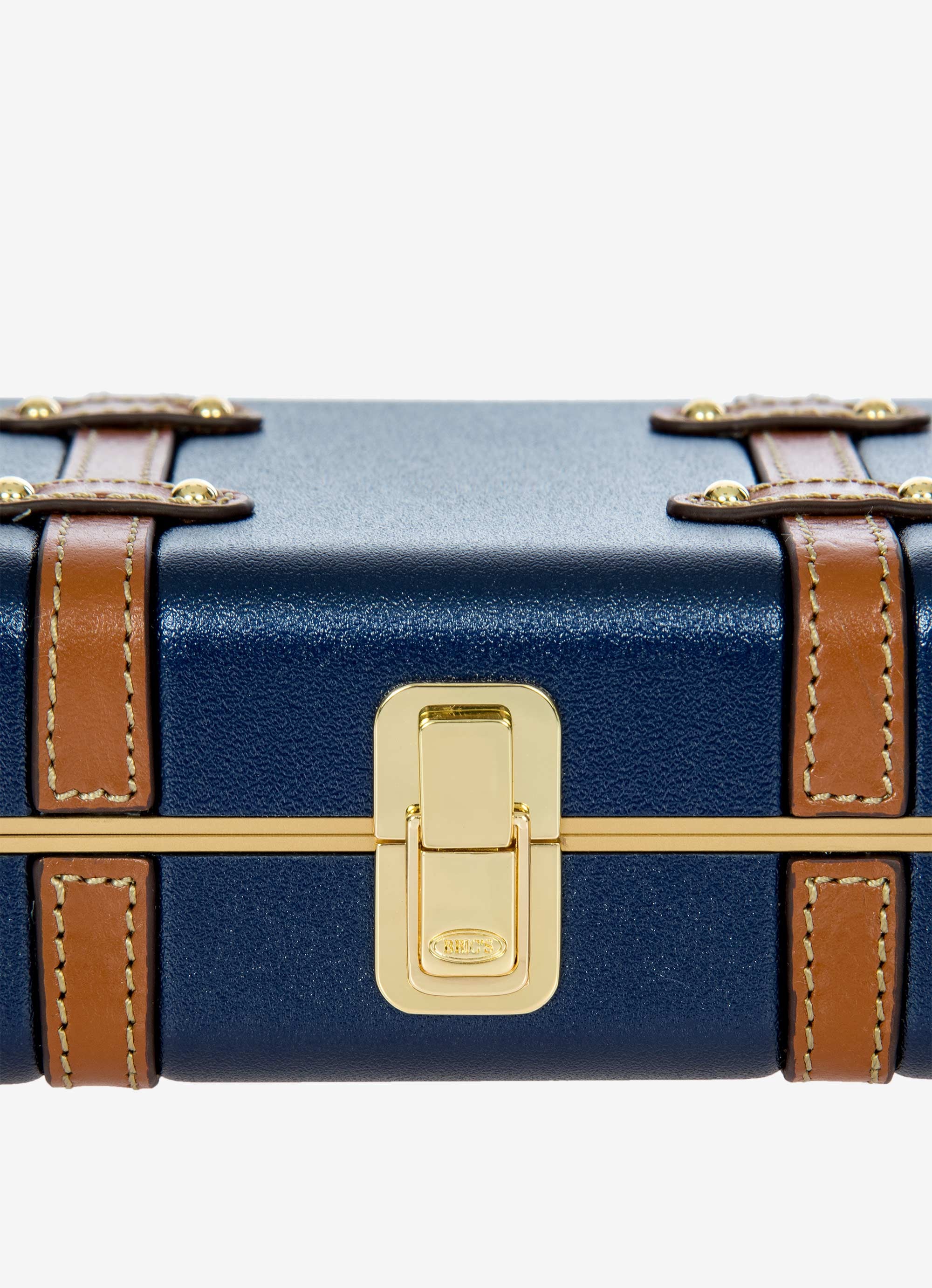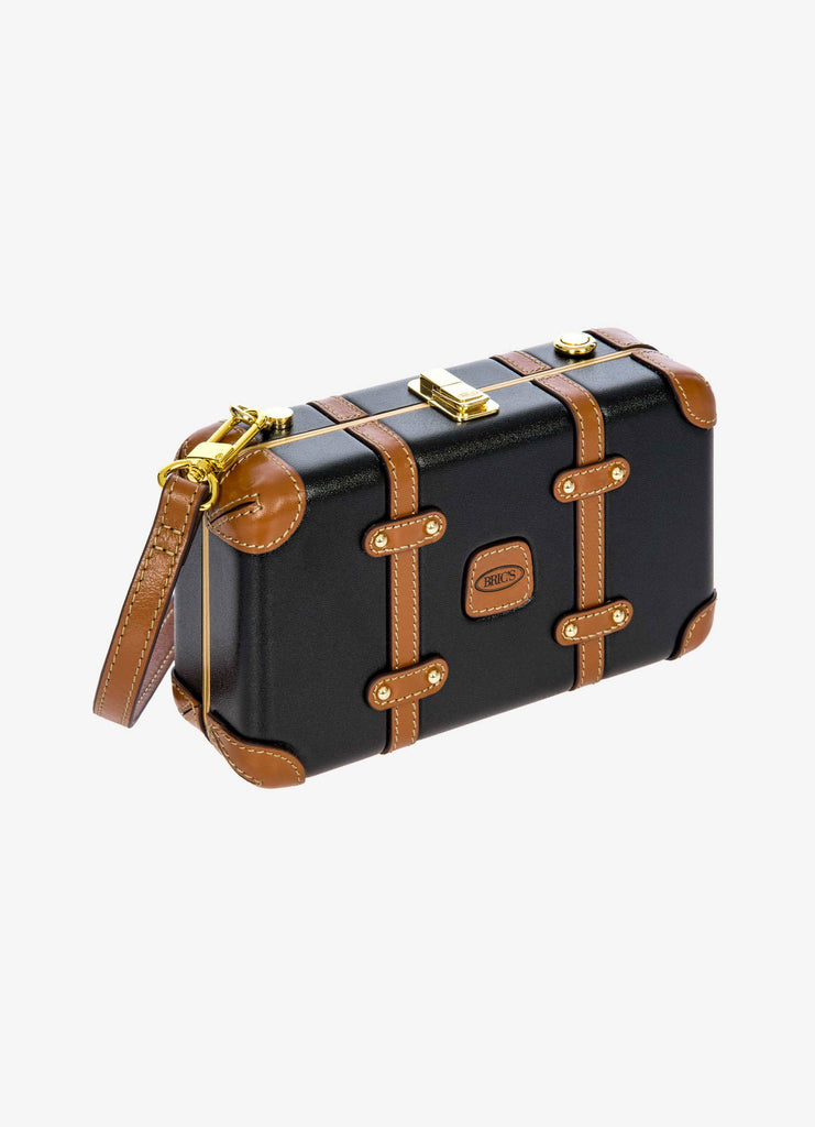 The Bellagio Legacy Bag is a small symbol of how hand-crafted excellence can be combined with elegance. Made to be paired with sophisticated looks, it recalls the iconic design of the Bellagio trolley suitcases. Meticulous attention to detail goes into making the Bellagio Legacy bag, from the real leather inserts to the gold-tone metal rivets. Constructed from an ultralight polycarbonate shell, it has been designed to elegantly hold personal items. It can be carried by hand, just like a chest, or it can be comfortably worn cross-body thanks to the soft, thin leather strap, adjustable and detachable. On the inside, it has two open compartments, divided by a zip pocket. The metal clasp closure is embellished by an embossed Bric’s logo.