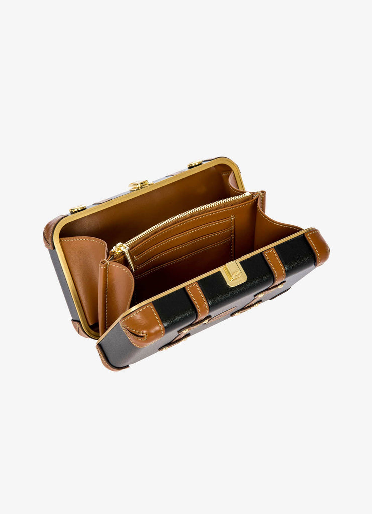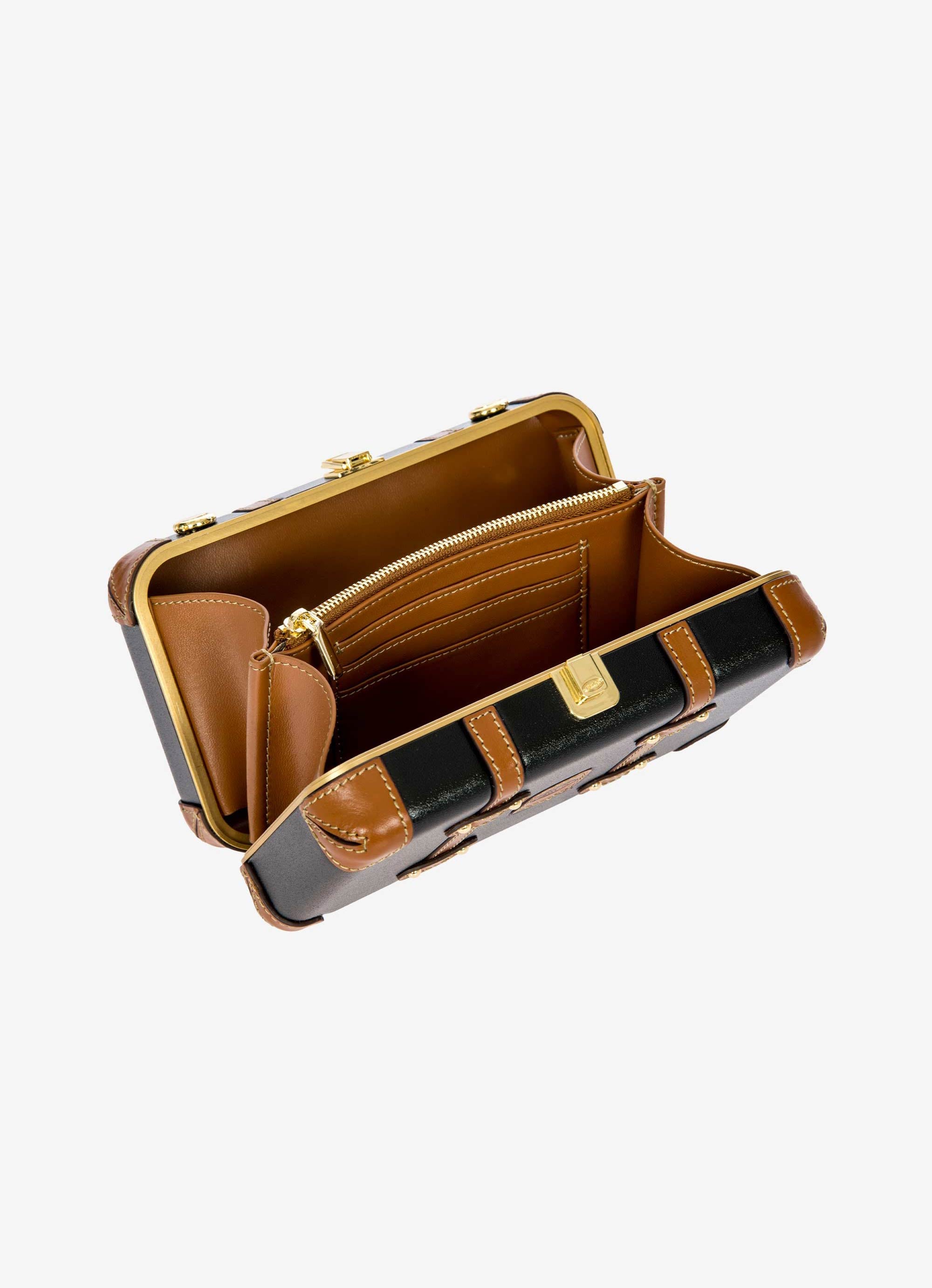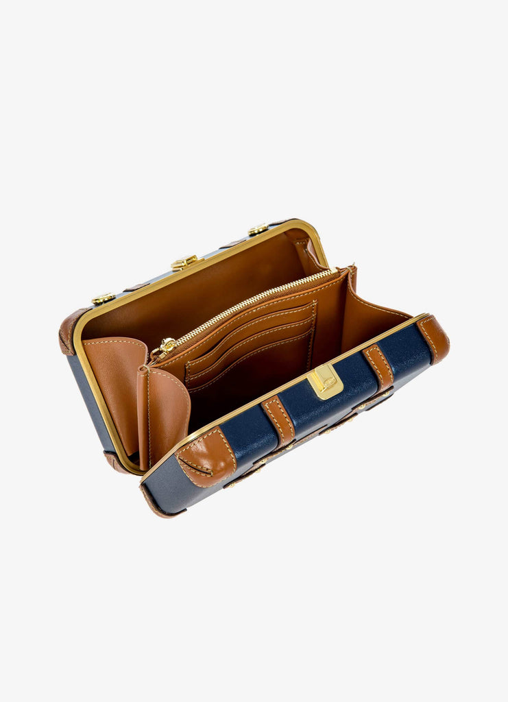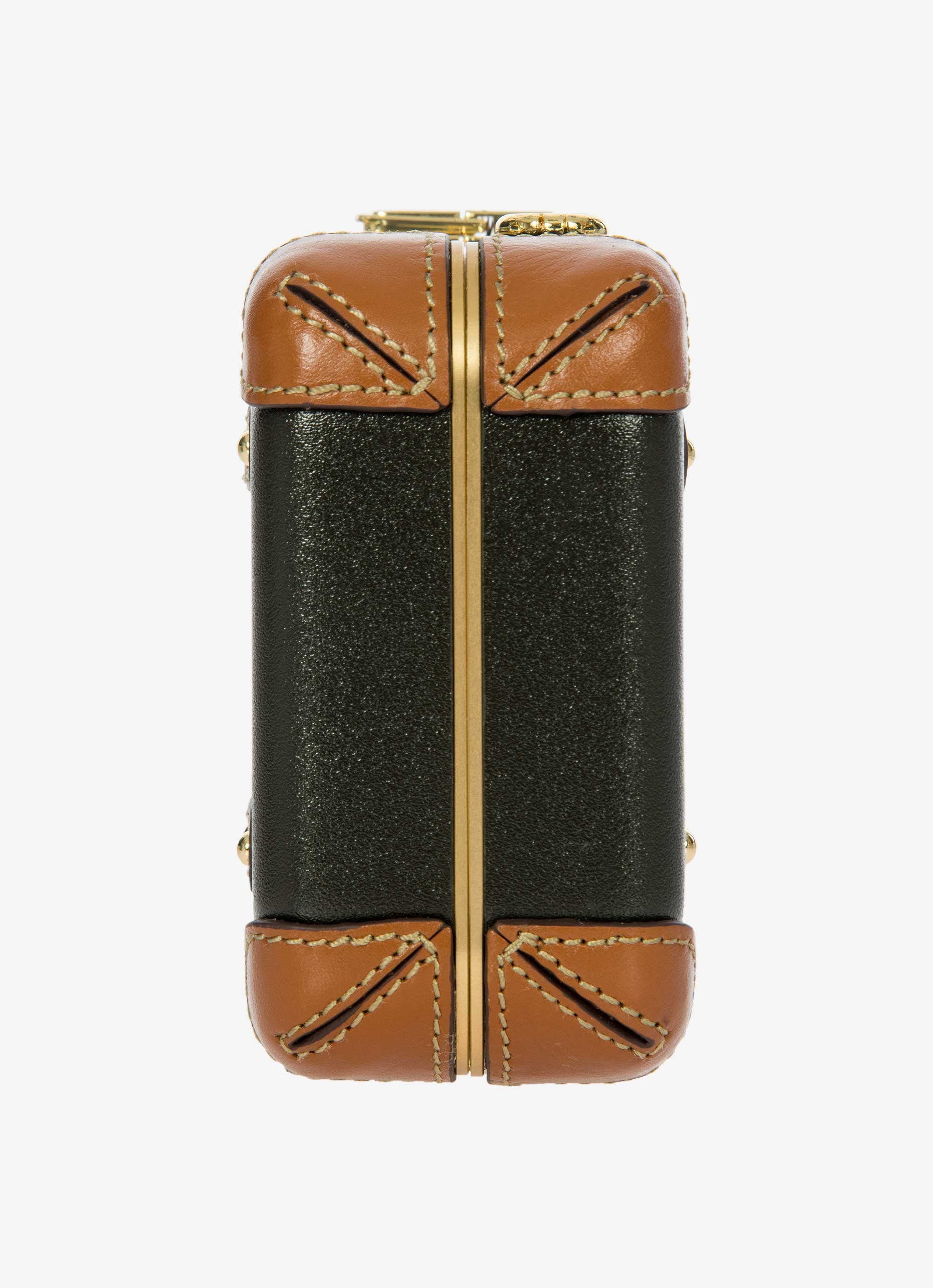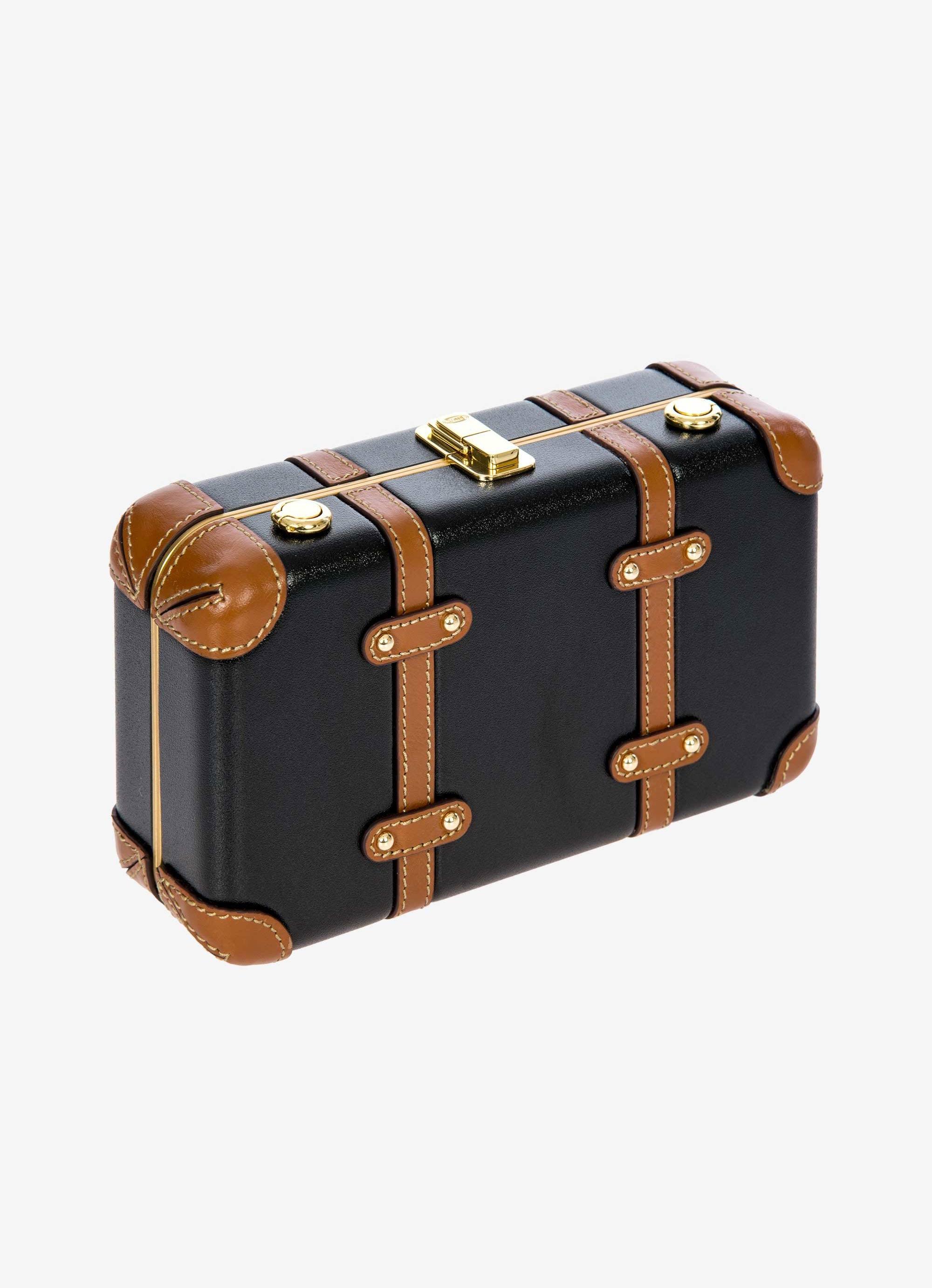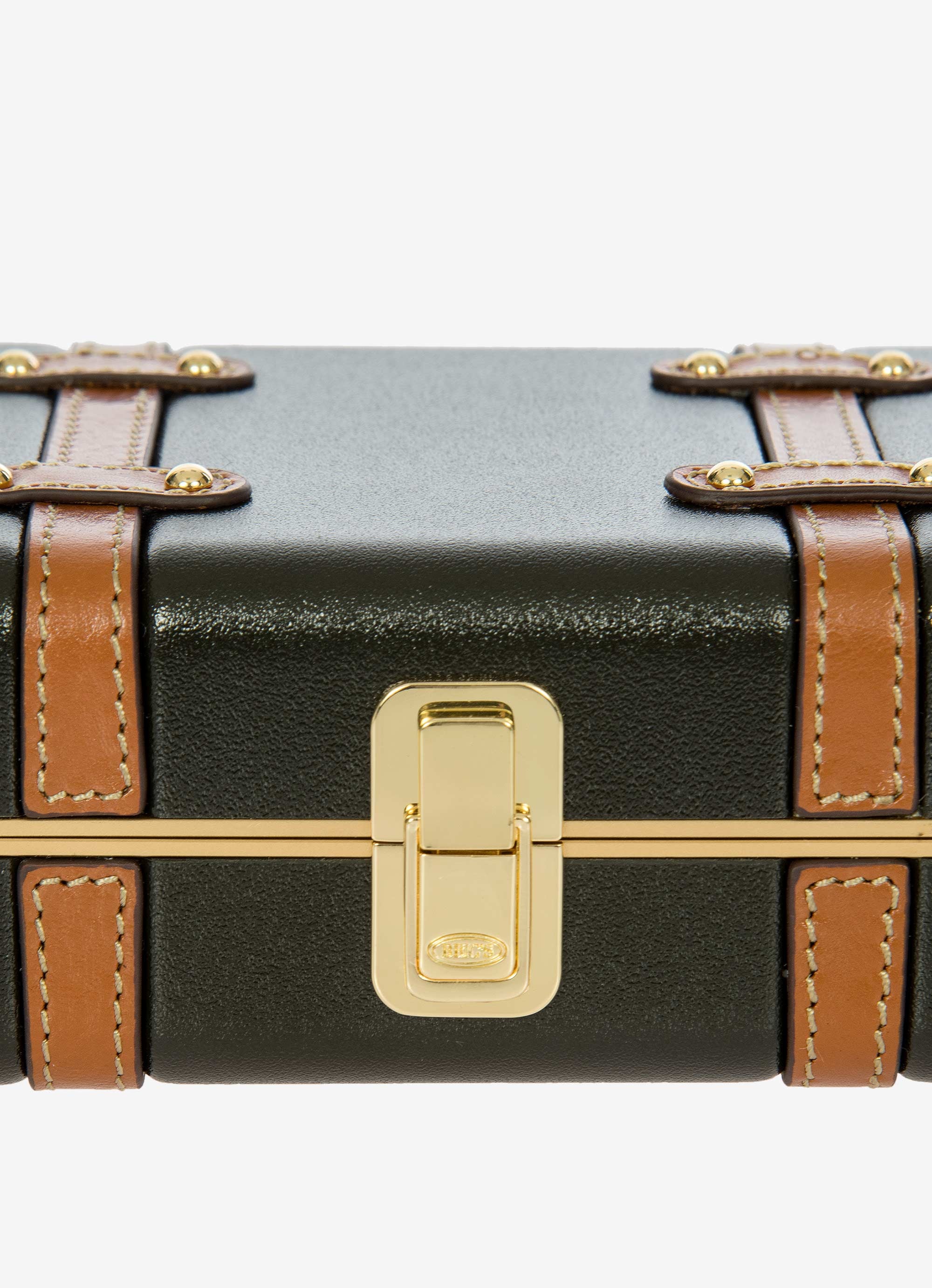 The Bellagio Legacy Bag is a small symbol of how hand-crafted excellence can be combined with elegance. Made to be paired with sophisticated looks, it recalls the iconic design of the Bellagio trolley suitcases. Meticulous attention to detail goes into making the Bellagio Legacy bag, from the real leather inserts to the gold-tone metal rivets. Constructed from an ultralight polycarbonate shell, it has been designed to elegantly hold personal items. It can be carried by hand, just like a chest, or it can be comfortably worn cross-body thanks to the soft, thin leather strap, adjustable and detachable. On the inside, it has two open compartments, divided by a zip pocket. The metal clasp closure is embellished by an embossed Bric’s logo.