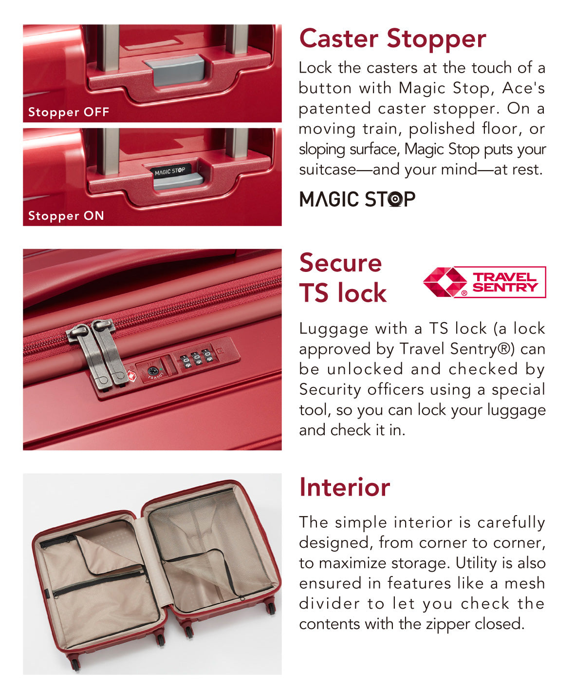 ● Equipped with a 3-digit dial-type TS lock that does not require carrying a key.