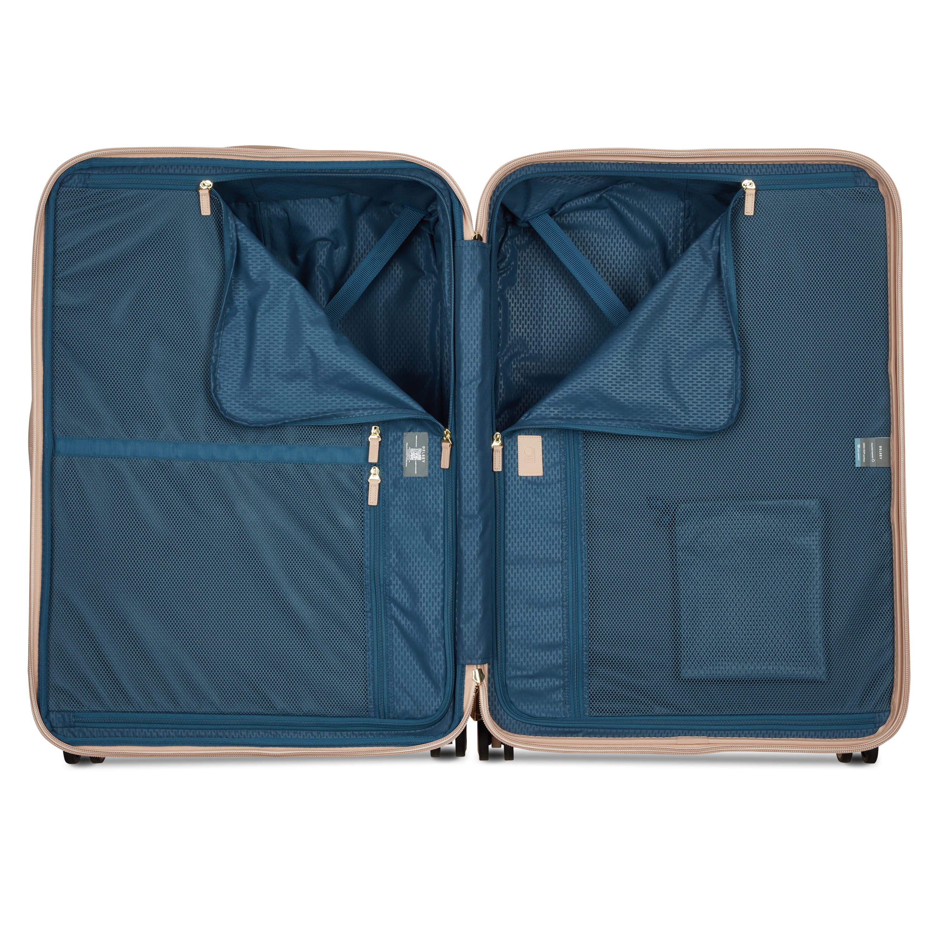 The Delsey Chatelet 2.0 range has had a 2022 upgrade. Lighter than the original range but still offers the same premium build and style. The shell is made from the latest in Polycarbonate material which is also ribbed to help prevent scratches and marks. The new version is also lighter and stronger than ever before. The Zippers are the top of the range Securi tech double zippers, these are 4 times stronger than a standard zip keeping your items safe. Inside is lined with premium material and features a zippable side with added pockets. The medium and large sizes feature classic leather effect corner covers.