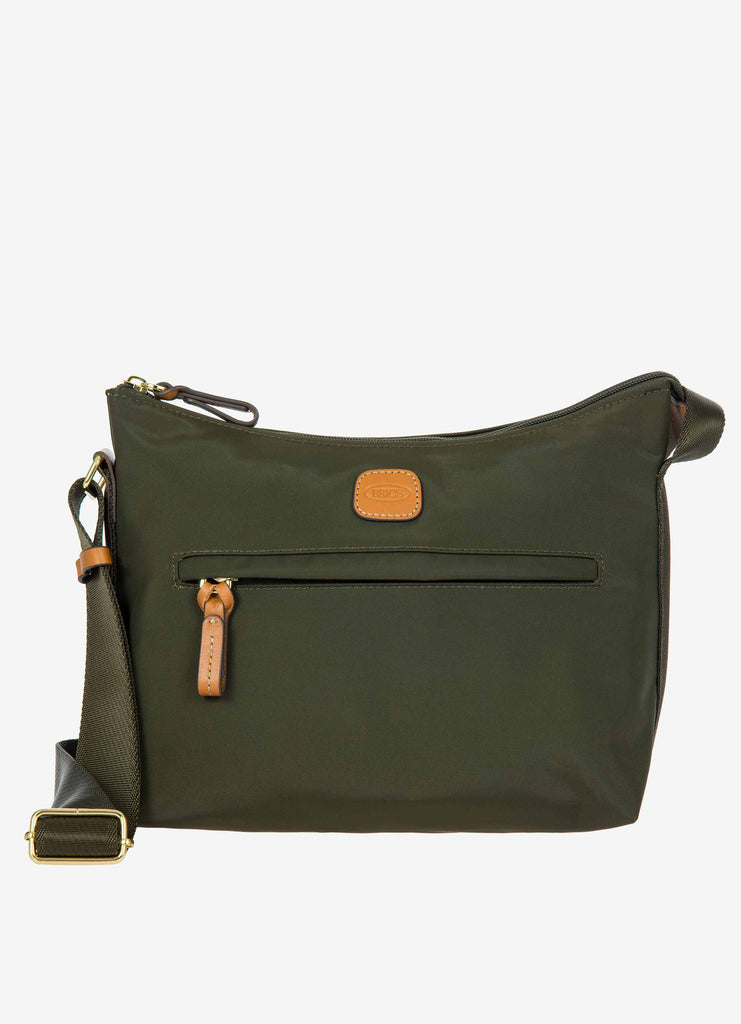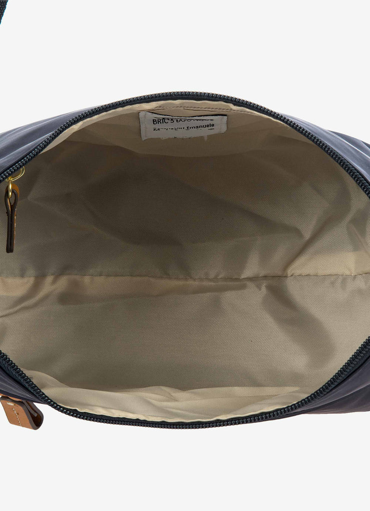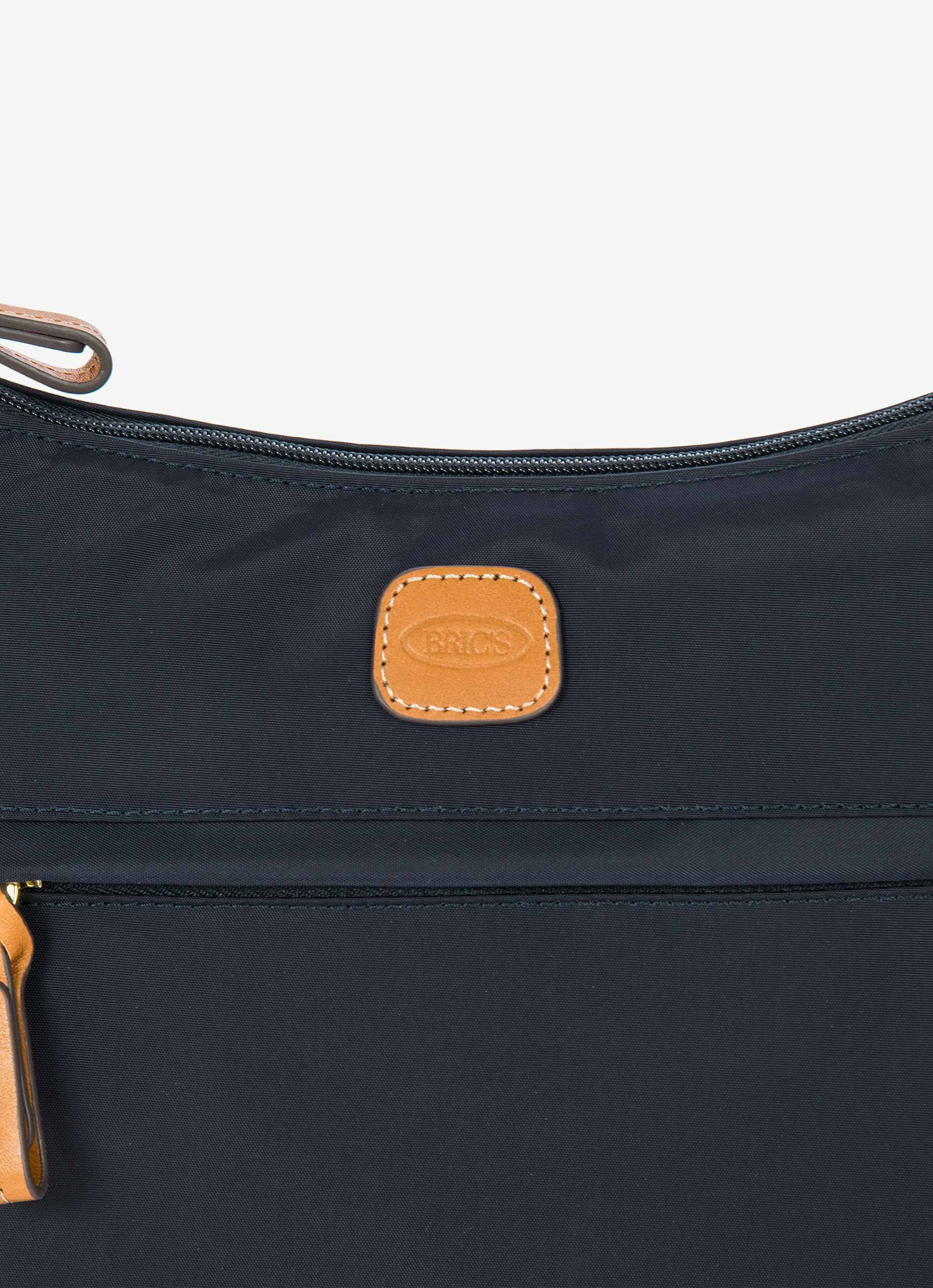 The small shoulderbag from the X-Collection is made of soft, lightweight and durable Nylon. Thanks to the adjustable shoulder strap, it can be comfortably carried either on the shoulder or across the body. Spacious yet compact, it is ideal for everyday use: equipped with a zipped external pocket and practical internal pockets, it helps you keep your personal items perfectly organised. The bag is finished with genuine leather details and fabric lining. Embellished with the iconic Bric's logo in leather on the outside.