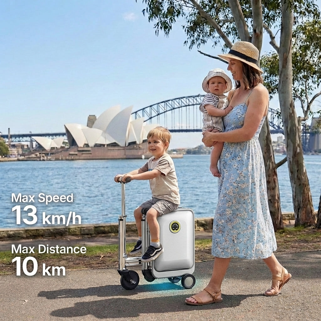 Introducing the Airwheel SE3S electric travel luggage, crafted for ultimate comfort with its extendable handlebar and footrest. This innovative suitcase ensures a personalized and enjoyable journey for every traveller.