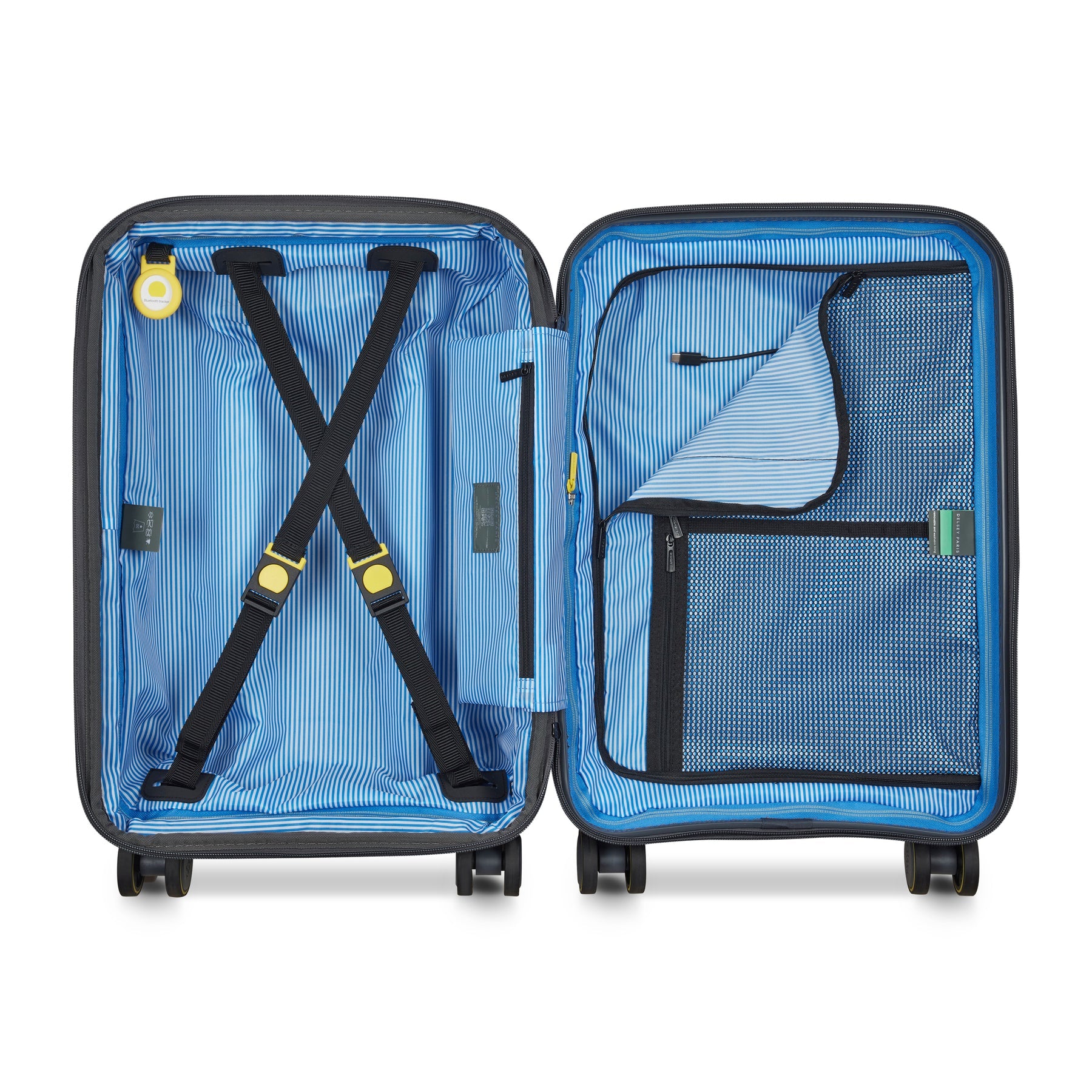 Made from recycled polypropylene, Delsey Lutece suitcase boasts a lightweight and durable shell. The components are designed with screw fastenings to ensure they are easily replaceable. An understated colour palette is married with functional features such as shock-absorbing wheels, a secure zip with an extension function and a removable, machinewashable lining. A TSA lock offers enhanced security when carrying valuables and the matte shell surface with dynamic strips makes a very stylish statement.